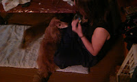 演奏が終わった後は、友人宅で犬たちに癒されるれいか。